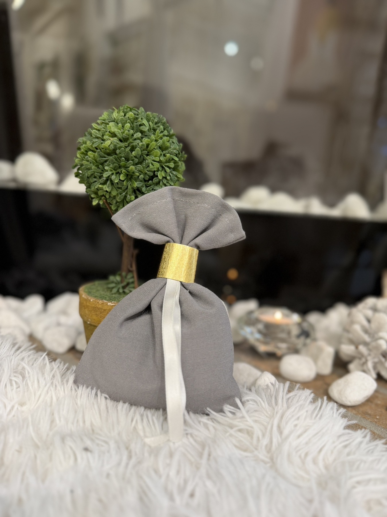 Μπομπονιέρες Βάπτισης – Γάμου Πουγκί με δαχτυλίδι από χρυσό η ασημί σύρμα .