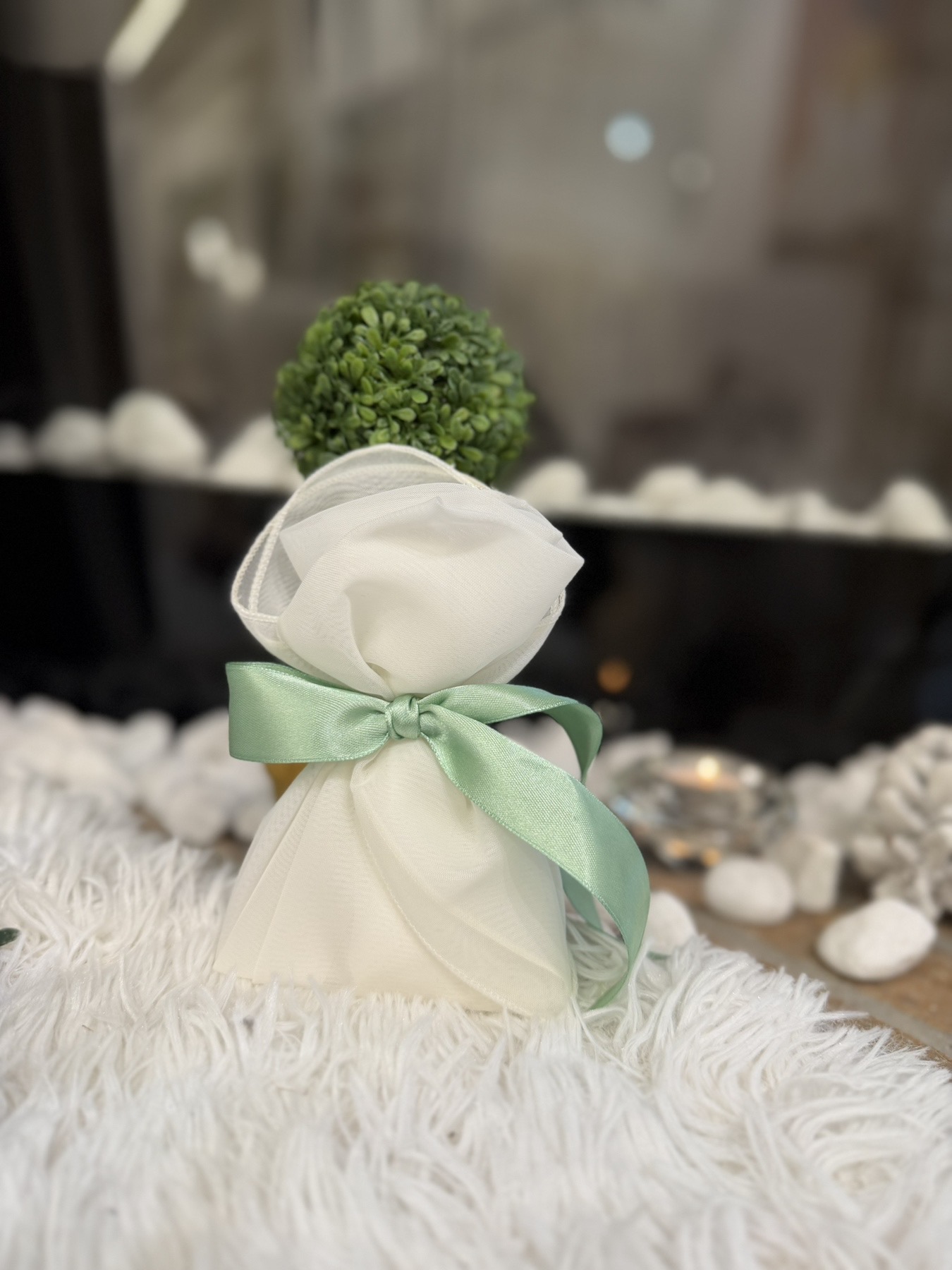 Μπομπονιέρες Βάπτισης – Γάμου Πουγκί με σατέν κορδέλα της επιλογής σας .
