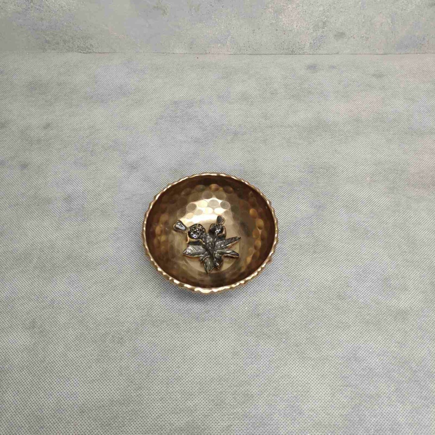 Μπρούτζινο διακοσμητικό μπολ με ανάγλυφο ασημί λουλούδι μέσα. Διάμετρος 10 εκ. βάθος 4 εκ. Χειροποίητο και κατασκευασμένο στην Ελλάδα