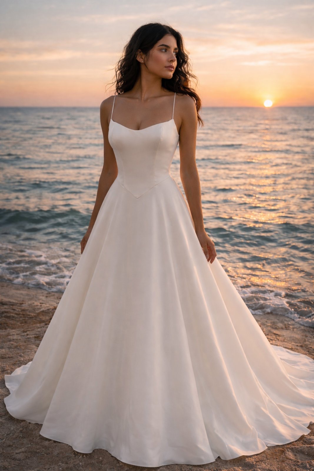 Νυφικό Α-γραμμής με εφαρμοστό μπούστο – σατέν minimal πολυτέλεια. Ανακαλύψτε την απόλυτη κομψότητα μέσα από αυτό το εντυπωσιακό Α γραμμής με εφαρμοστό μπούστο, σχεδιασμένο για να αναδεικνύει τη θηλυκότητα με διακριτική πολυτέλεια. Το δομημένο μπούστο αγκαλιάζει τέλεια το σώμα, προσφέροντας άψογη στήριξη και ανάδειξη του στήθους, ενώ η καλοσχεδιασμένη μέση τονίζει τη σιλουέτα. Η φούστα ανοίγει απαλά σε κλασική Α – γραμμή, δημιουργώντας ροή και κίνηση σε κάθε βήμα. Το υψηλής ποιότητας σατέν ύφασμα είναι λείο, εφαρμοστό, χαρίζοντας καθαρές γραμμές και minimal αισθητική που αποπνέει διαχρονική κομψότητα.