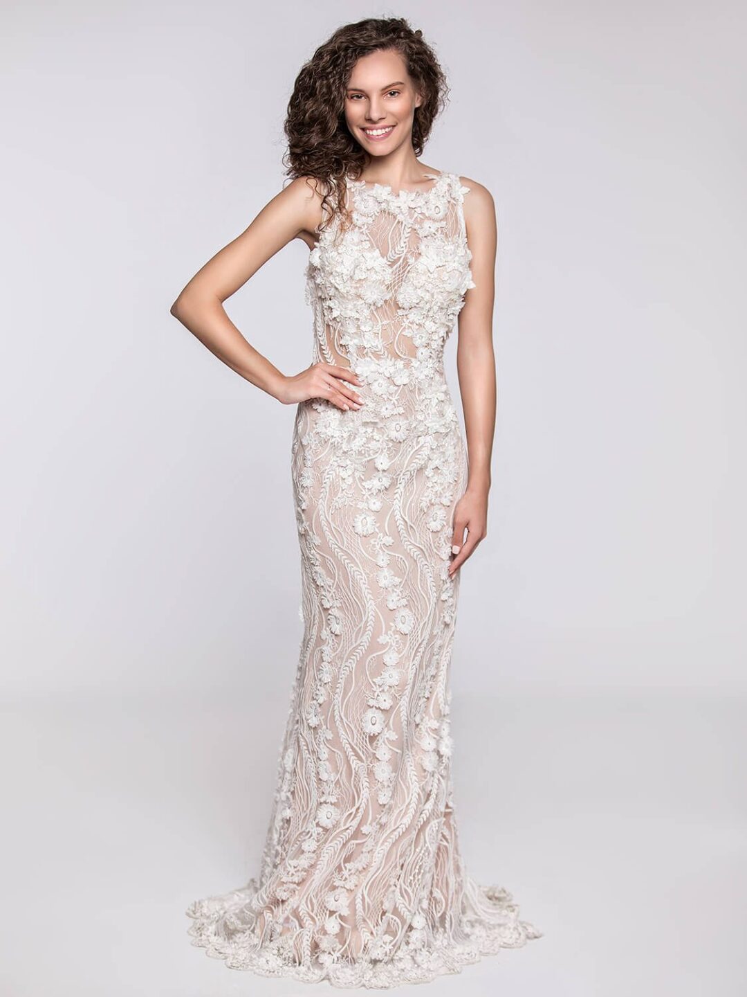 Νυφικό γοργονέ από ολοκέντητη γαλλική δαντέλα με 3D λουλούδια. Διαφάνεια στη μέση, υπέροχη ανοικτή πλάτη και διακριτική ουρά. Πολλές νύφες μας, μας έχουν εμπιστευτεί και έχουν αγοράσει με τις συμβουλές μας το νυφικό τους online. Αν δεν είσαι σίγουρη για την εφαρμογή του μπορείς να κλείσεις ραντεβού για πρόβα στο info@missvanity.gr για να επισκεφτείς το φυσικό μας κατάστημα και κέρδισε 10% έκπτωση. Για οποιαδήποτε πληροφορία ή ραντεβού κάλεστε στο 22210 86623.