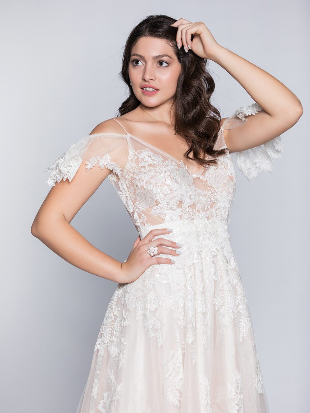 Νυφικό στο χρώμα της πούδρας, από γαλλική ανάγλυφη κεντημένη με παγιέτα δαντέλα στο χρώμα της πουδράς. Το νυφικό έχει κεντημένη διαφάνεια στο μπούστο, γαλλικό μανικάκι, βαθύ V πίσω, με grow κορδέλα στο χρώμα της πούδρας. Το νυφικό είναι μοναδικό και είναι μόνο προς πώληση, ώστε να είσαι σίγουρη ότι θα είναι μοναδικά ξεχωριστό όπως σου αρμόζει. Όλα μας τα νυφικά προέρχονται από ευρωπαϊκούς οίκους μόδας. Ολοκαίνουργια νυφικά 2019 και διατίθονται μόνο για αγορά. Ανακάλυψε τα ιδανικά στέφανα για τον ονειρεμένο γάμο σου! Πολλές νύφες μας μας έχουν εμπιστευτεί και έχουν αγοράσει με τις συμβουλές μας το νυφικό τους online. Αν δεν είσαι σίγουρη για την εφαργαγή του μπορείς να κλείσεις ραντεβού για πρόβα στο info@missvanity.gr για να επισκεφτείς το φυσικό μας κατάστημα και κέρδισε 10% έκπτωση.