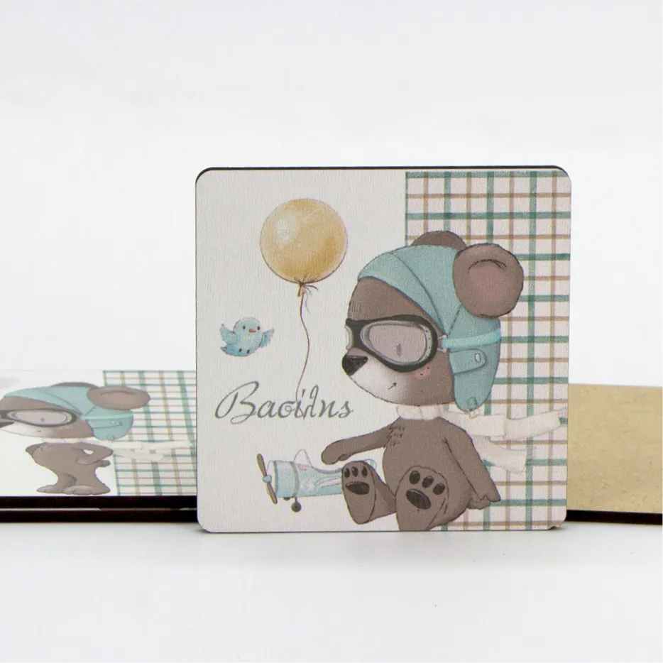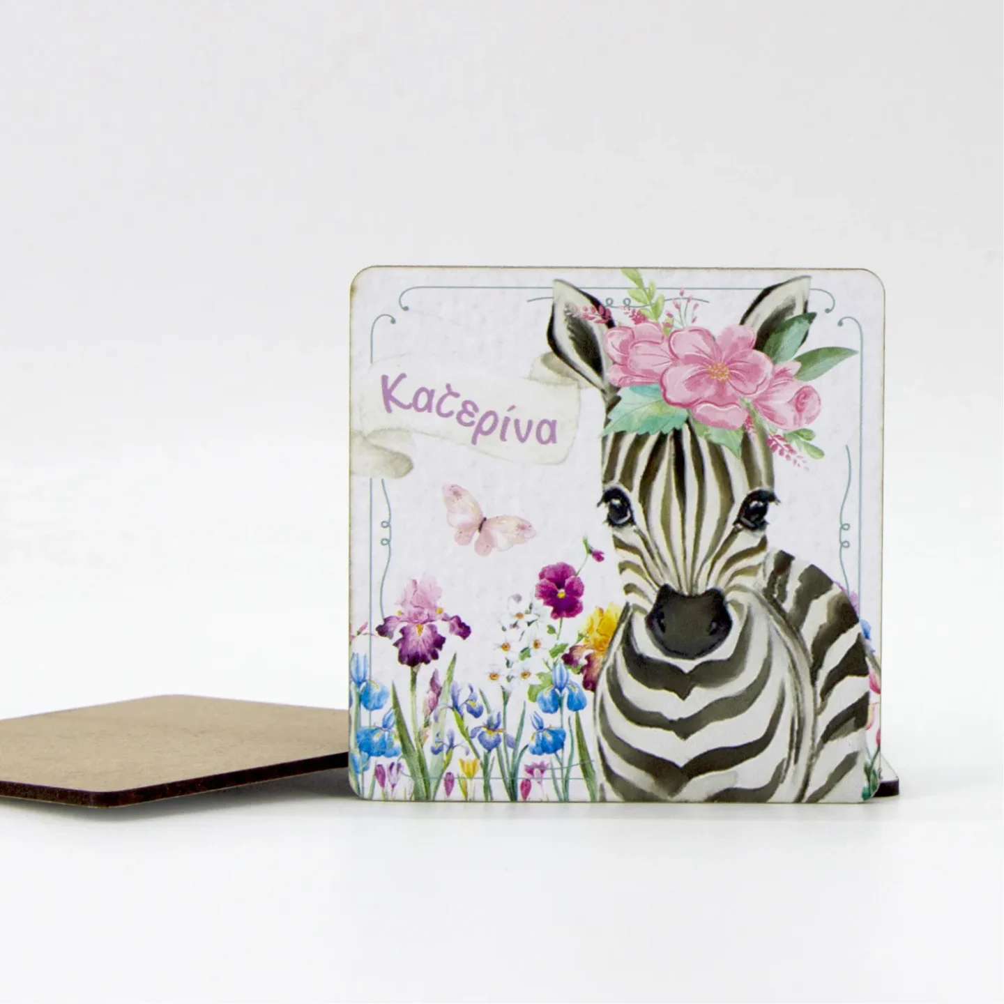 Τετράγωνο σουβέρ με στρογγυλεμένες γωνίες, από ξύλο 3χλ (διάστασης 9×9εκ), με 4χρωµη εκτύπωση στο θέμα του μυστηρίου.