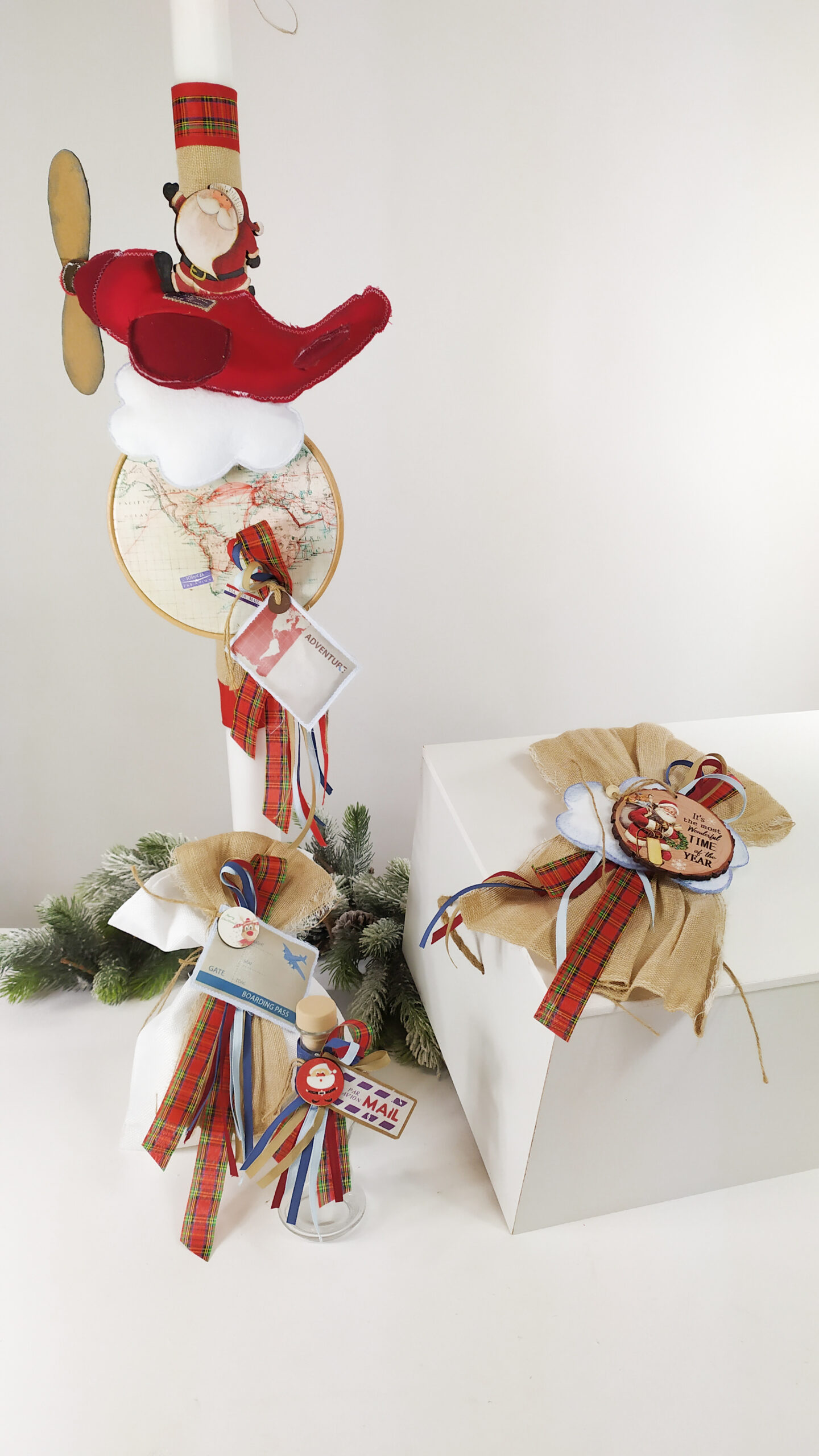 Ολοκληρωμένο πακέτο βάπτισης Άγιος Βασίλης. Το πακέτο περιλαμβάνει ξύλινο μπαούλο, λαδόπανα, 3 κεράκια κολυμπήθρας, σαπουνάκι, μπουκαλάκι λαδιού και 50 μαρτυρικά.