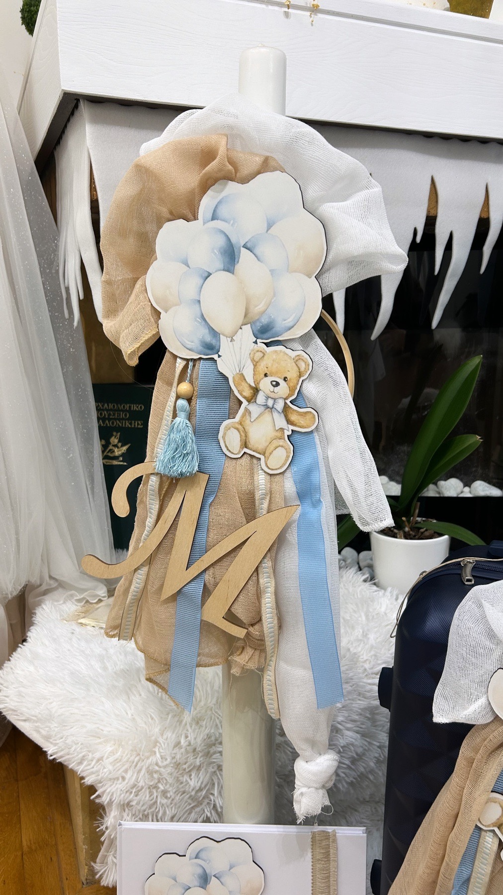 Στην τιμή συμπεριλαμβάνεται ο στολισμός της λαμπάδας (δεν συμπεριλαμβάνεται το κερί) και της βαλίτσας.