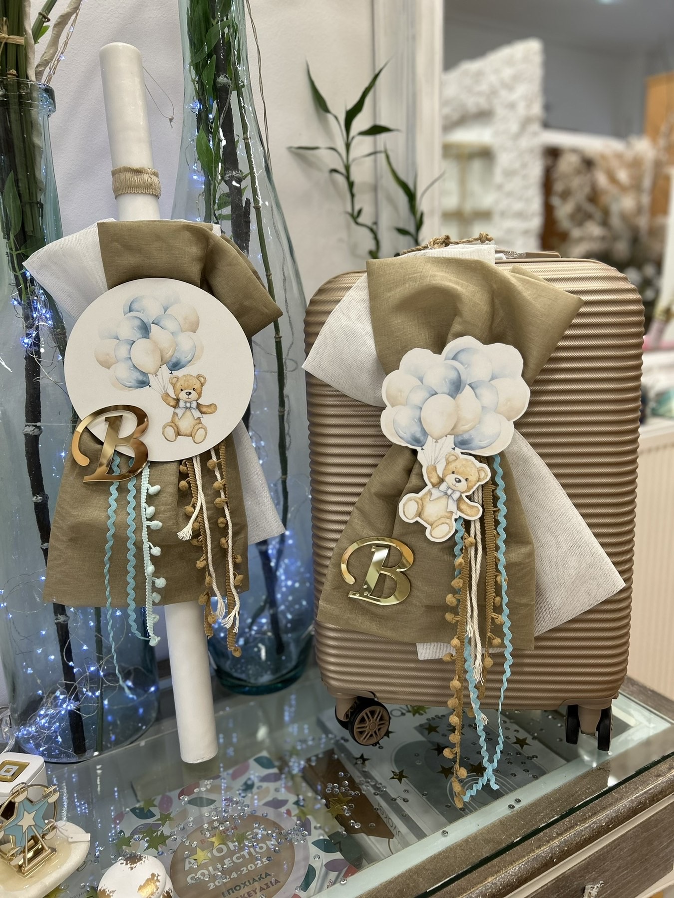 Στην τιμή συμπεριλαμβάνεται ο στολισμός της λαμπάδας ( δεν συμπεριλαμβάνεται το κερί ) και της βαλίτσας