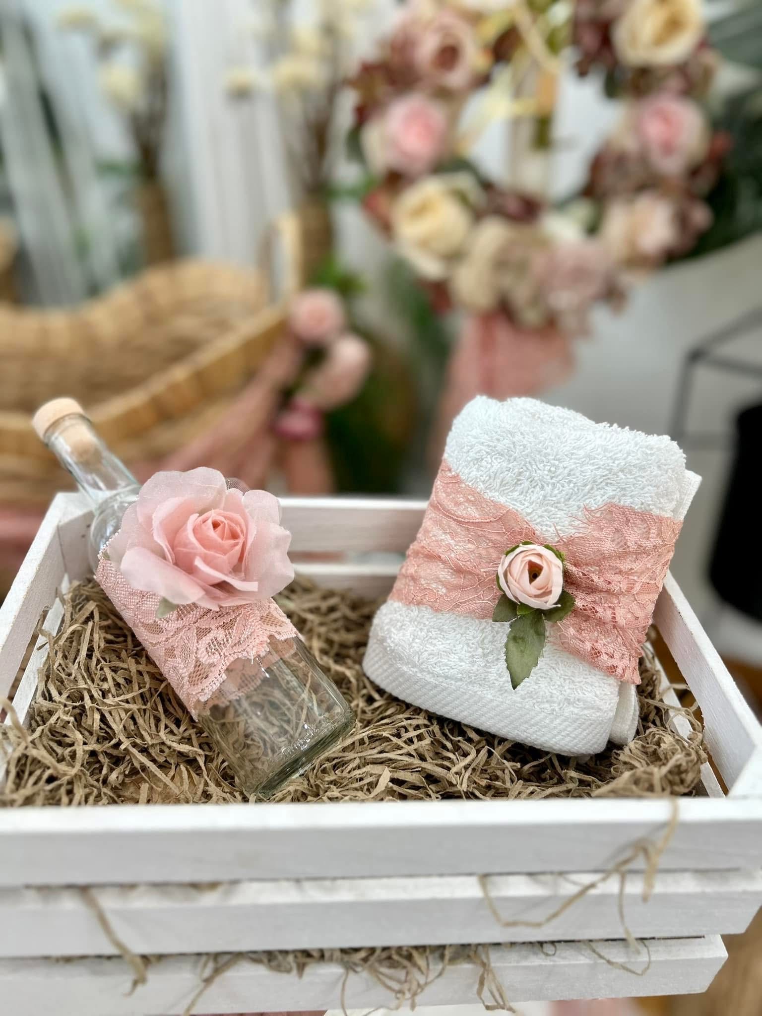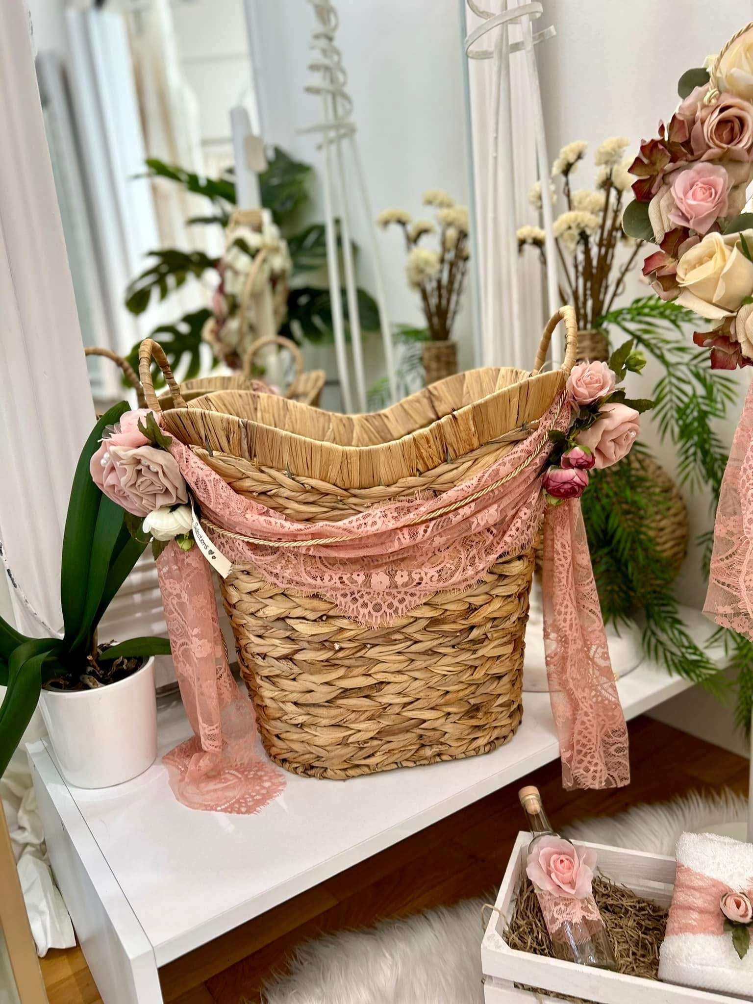 Ολοκληρωμένο πακέτο βάπτισης με θεμα Λουλούδια. Το πακέτο περιλαμβάνει ψάθινο καλάθι, λαδόπανα, 3 κεράκια κολυμπήθρας, σαπουνάκι, μπουκαλάκι λαδιού και 50 μαρτυρικά.