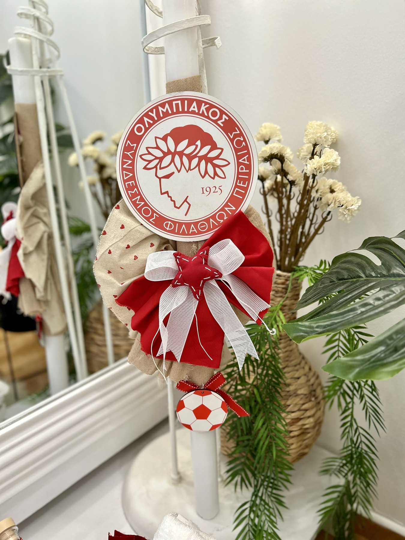 Ολοκληρωμένο πακέτο βάπτισης με θέμα Ολυμπιακός . Το πακέτο περιλαμβάνει τροχήλατη βαλίτσα, λαδόπανα, 3 κεράκια κολυμπήθρας, σαπουνάκι, μπουκαλάκι λαδιού και 50 μαρτυρικά. Επίσης περιέχει το ρούχο και παπούτσι της επιλογησ σας (για το συγκεκριμένο ρούχο και παπούτσι να προηγηθεί τηλεφωνική επικοινωνία ).