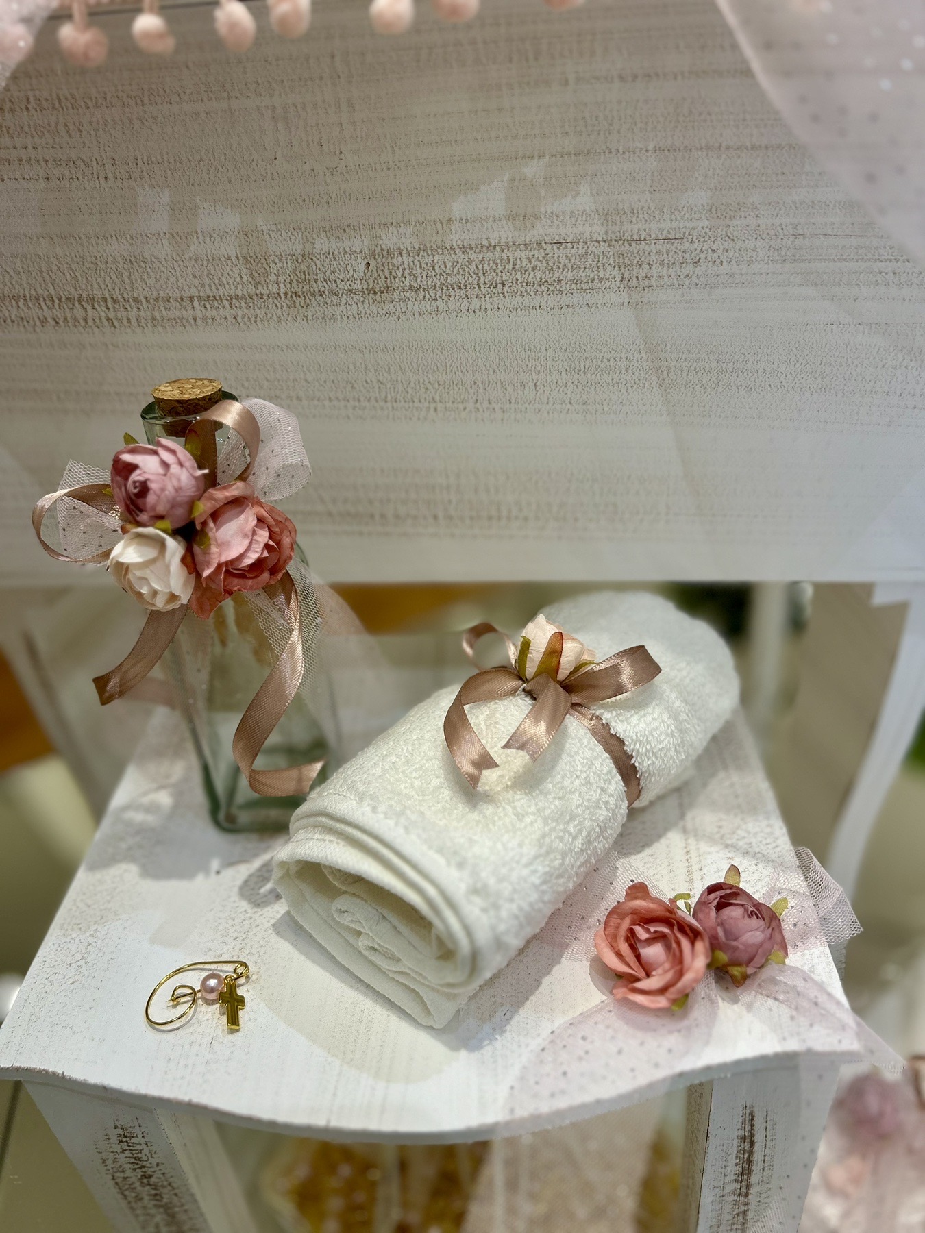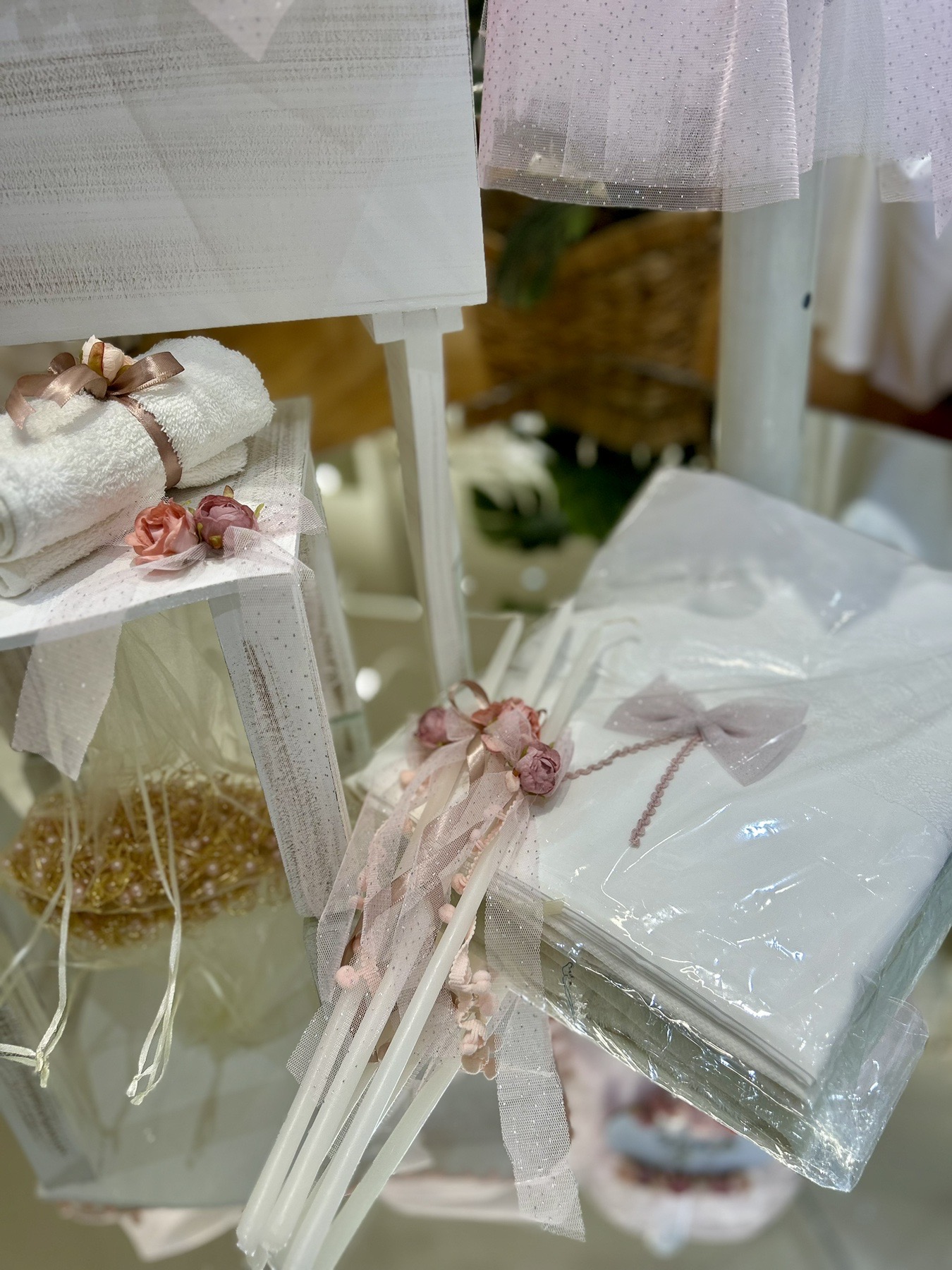 Ολοκληρωμένο πακέτο βάπτισης σε στιλ Boho. Το πακέτο περιλαμβάνει τροχήλατη βαλίτσα, λαδόπανα, 3 κεράκια κολυμπήθρας, σαπουνάκι, μπουκαλάκι λαδιού, 50 μαρτυρικά . Επίσης περιέχει το ρούχο και παπούτσι της επιλογησ σας .