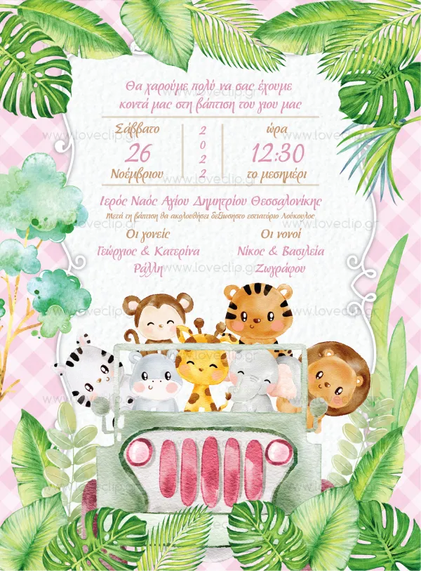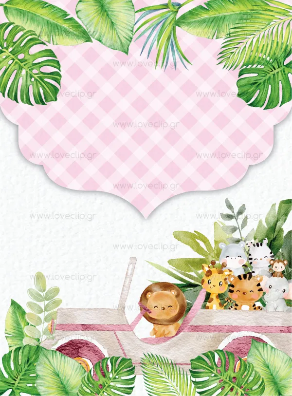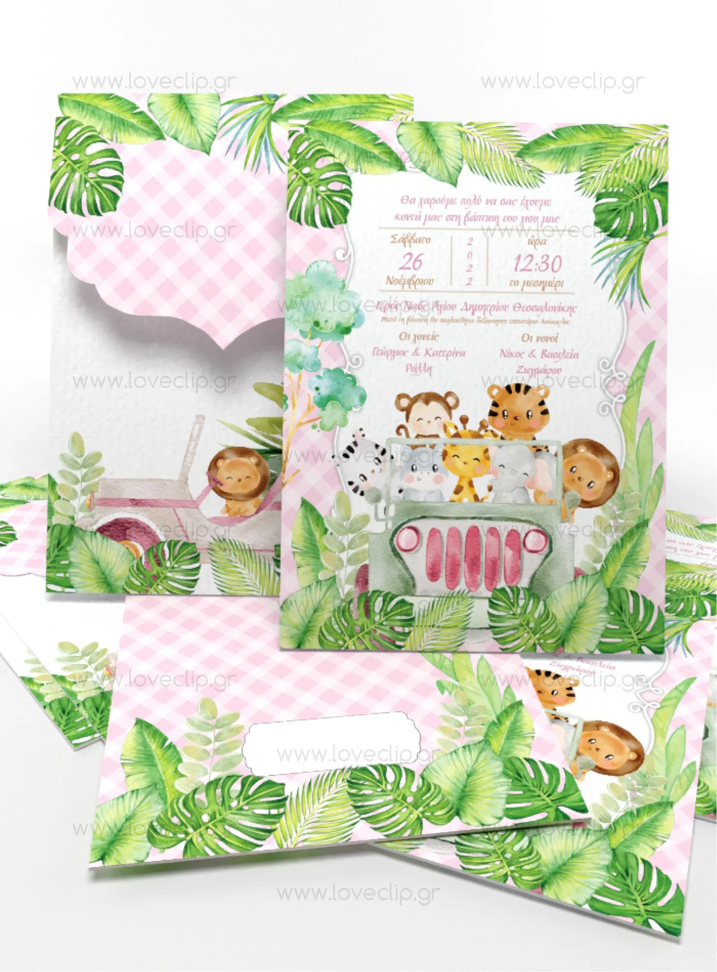 Προσκλητήριο με θέμα τα ζωάκια της ζούγκλας.