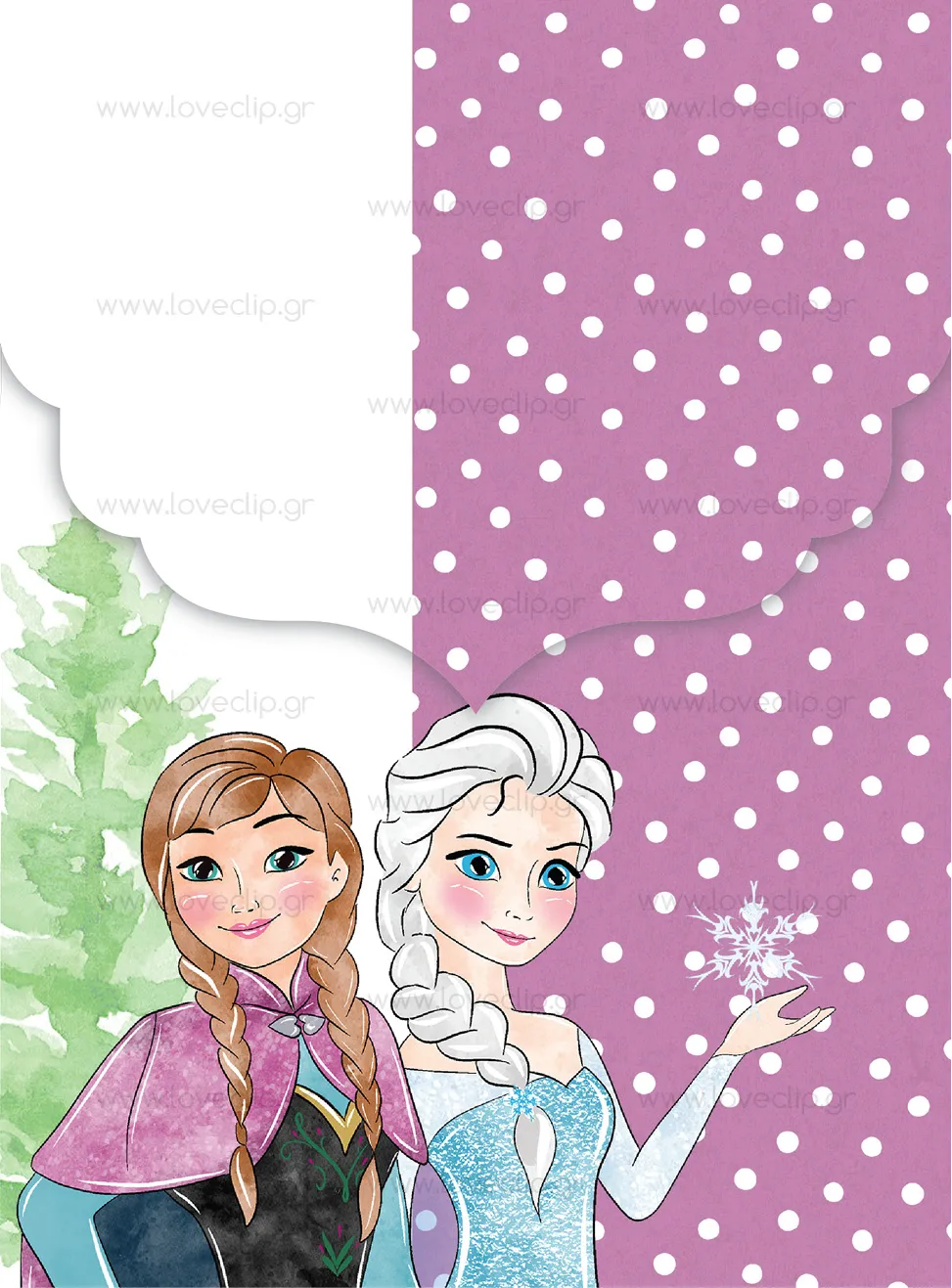 Προσκλητήριο βάπτισης για κορίτσι, από τη σειρά boheme, με θέμα την Άννα και την Έλσα από το Frozen στο πιο χαρούμενο χειμωνιάτικο χριστουγεννιάτικο σκηνικό.