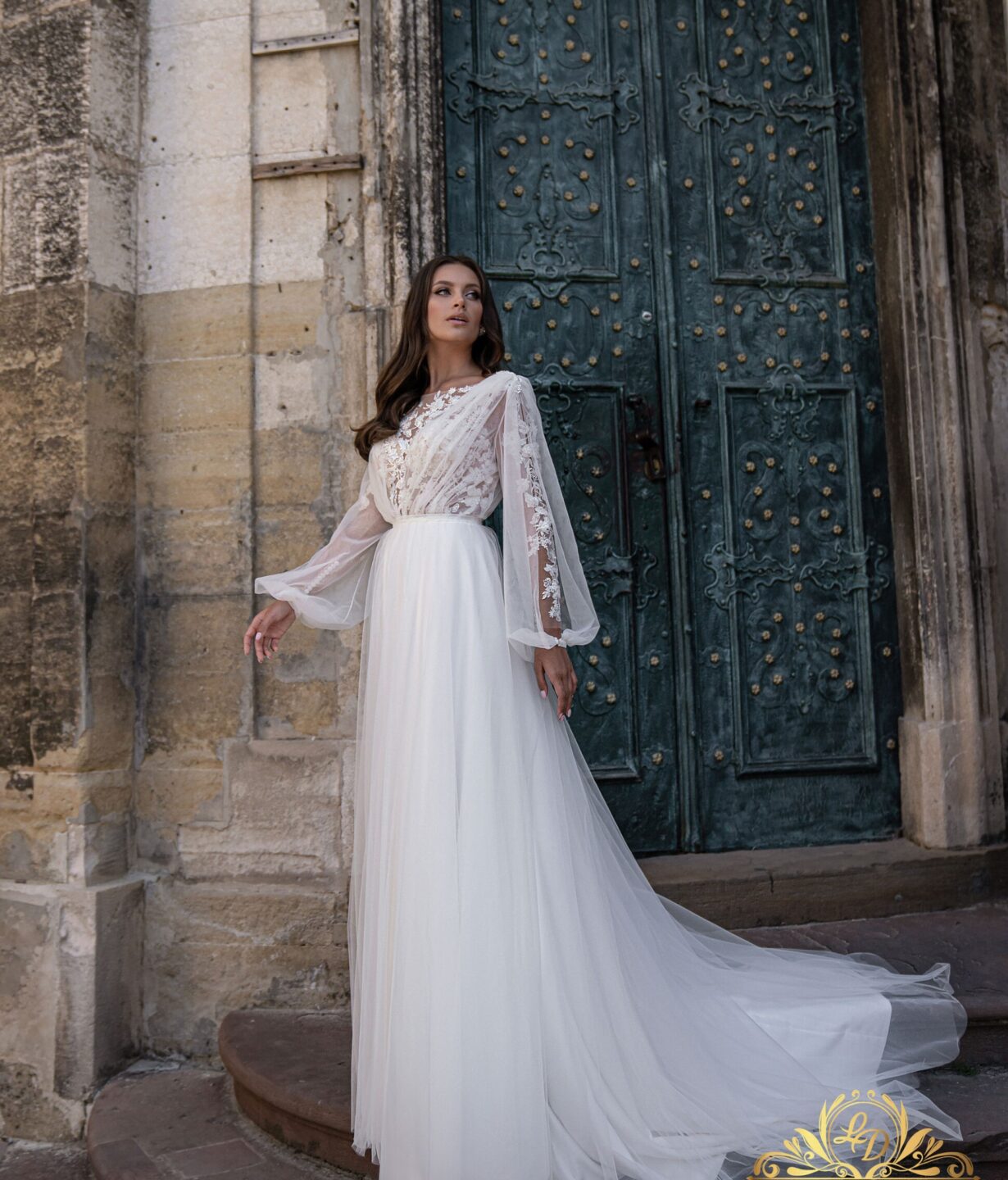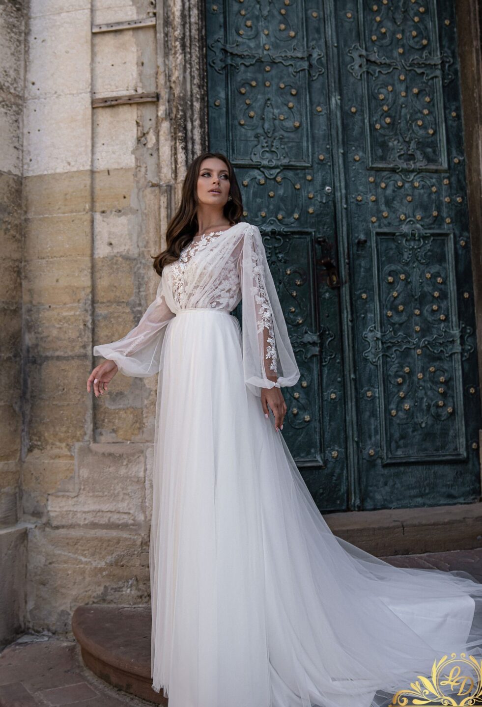 Ρομαντικό νυφικό με αποσπώμενο ολόσωμο τούλι