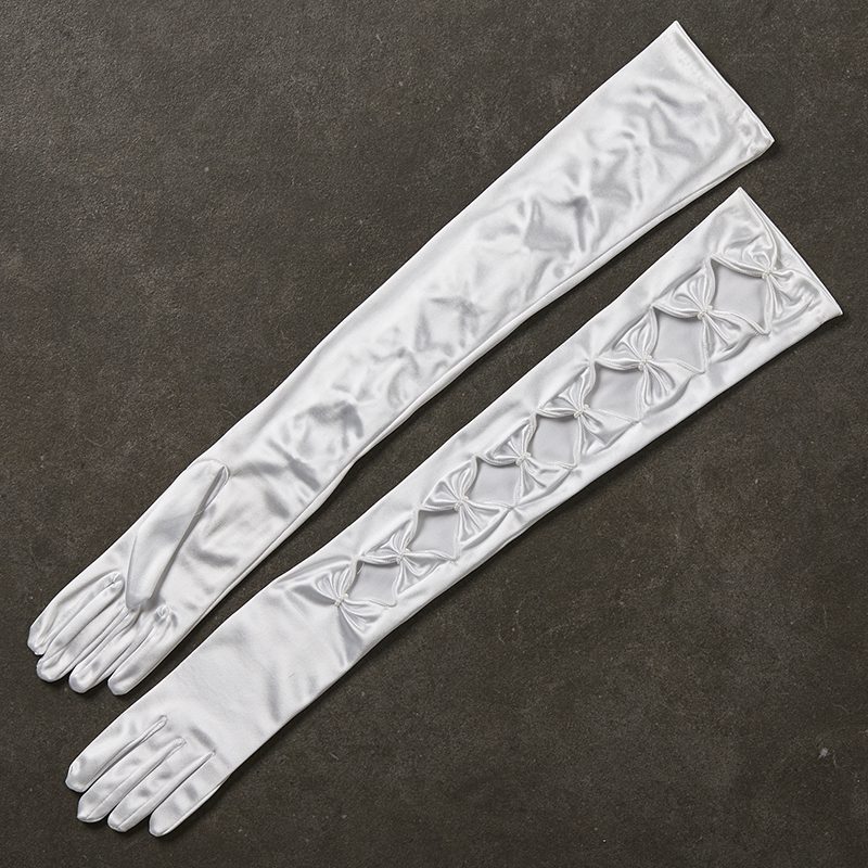 Σατέν νυφικά γάντια με φιόγκους σε λευκό_50cm