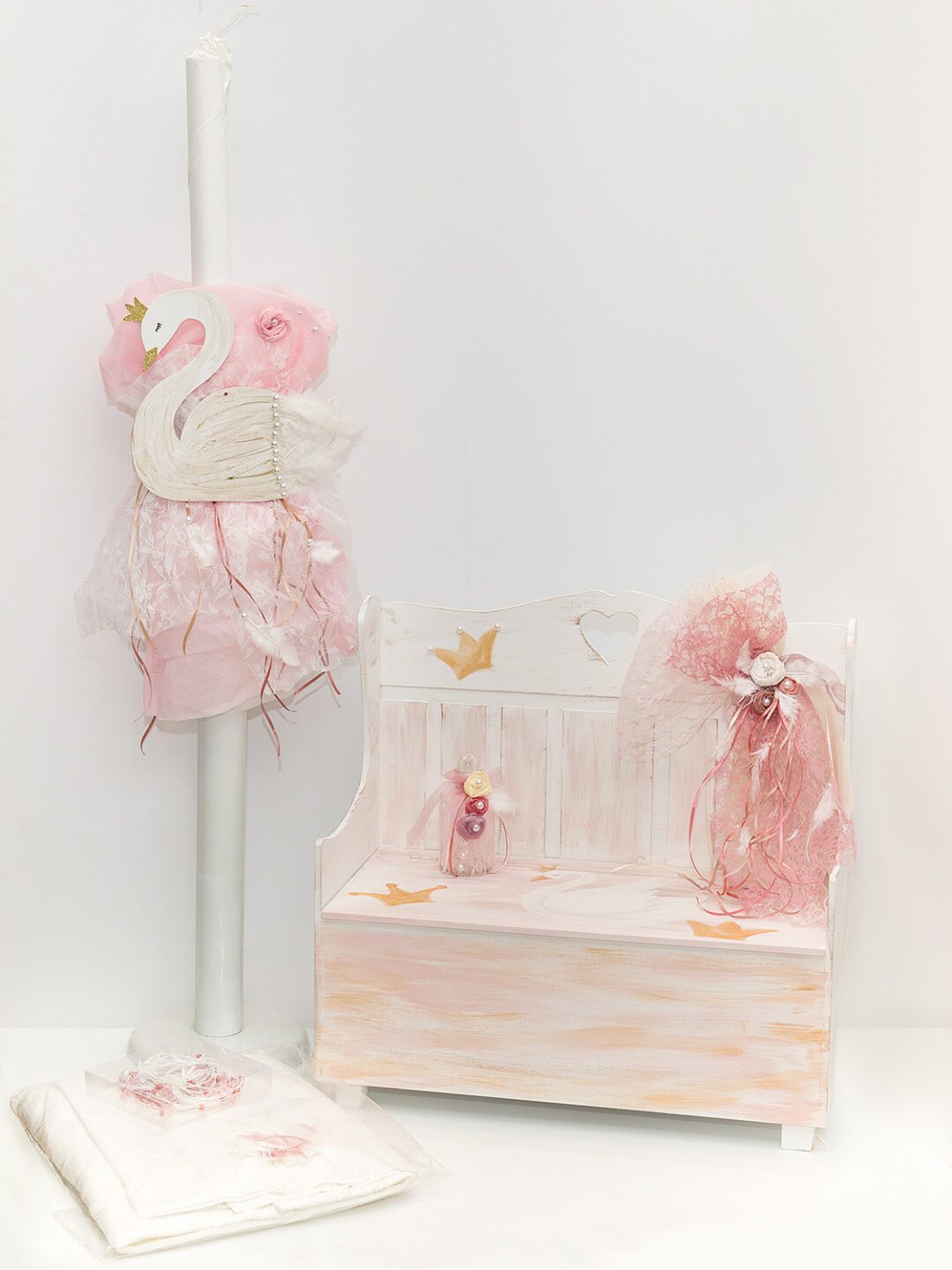 Σετ βάπτισης παγκάκι με θέμα τον κύκνο