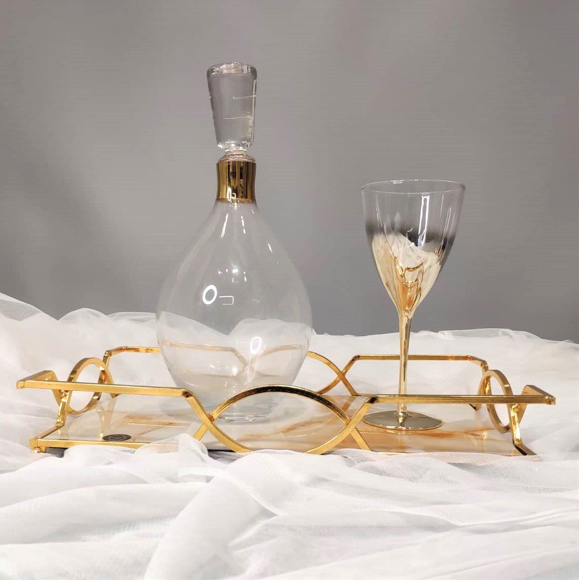 Σετ κουμπάρου από κρύσταλλο Βοημίας. Το σετ περιλαμβάνει περίτεχνο επίχρυσο δίσκο 40×25 με εφέ μαρμάρου , ιδιαίτερη μποτίλια κρασιού και ποτήρι από κρύσταλλο Βοημίας. Όλα είναι χειροποίητα και κατασκευασμένα στην Ελλάδα.