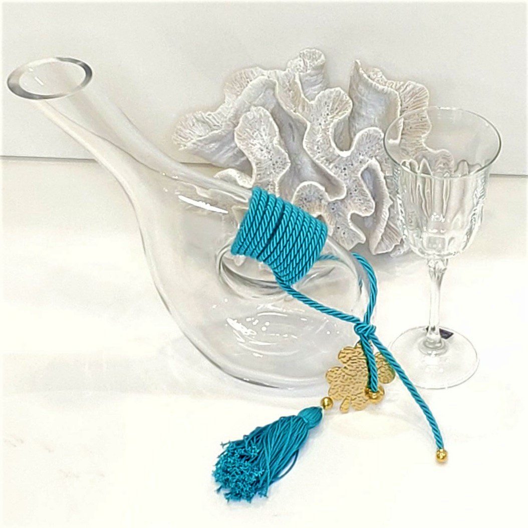 Το σετ περιλαμβάνει ιδιαίτερη μποτίλια κρασιού και ποτήρι από κρύσταλλο Βοημίας, διακοσμημένο με επιχρυσωμένο 24 καρατίων στολίδι Tresento, με χρυσό τετράφυλλο τριφύλλι, σφυρήλατο, μπλε φούντα και μεταξωτό κορδόνι. Όλα είναι χειροποίητα και κατασκευασμένα στην Ελλάδα.