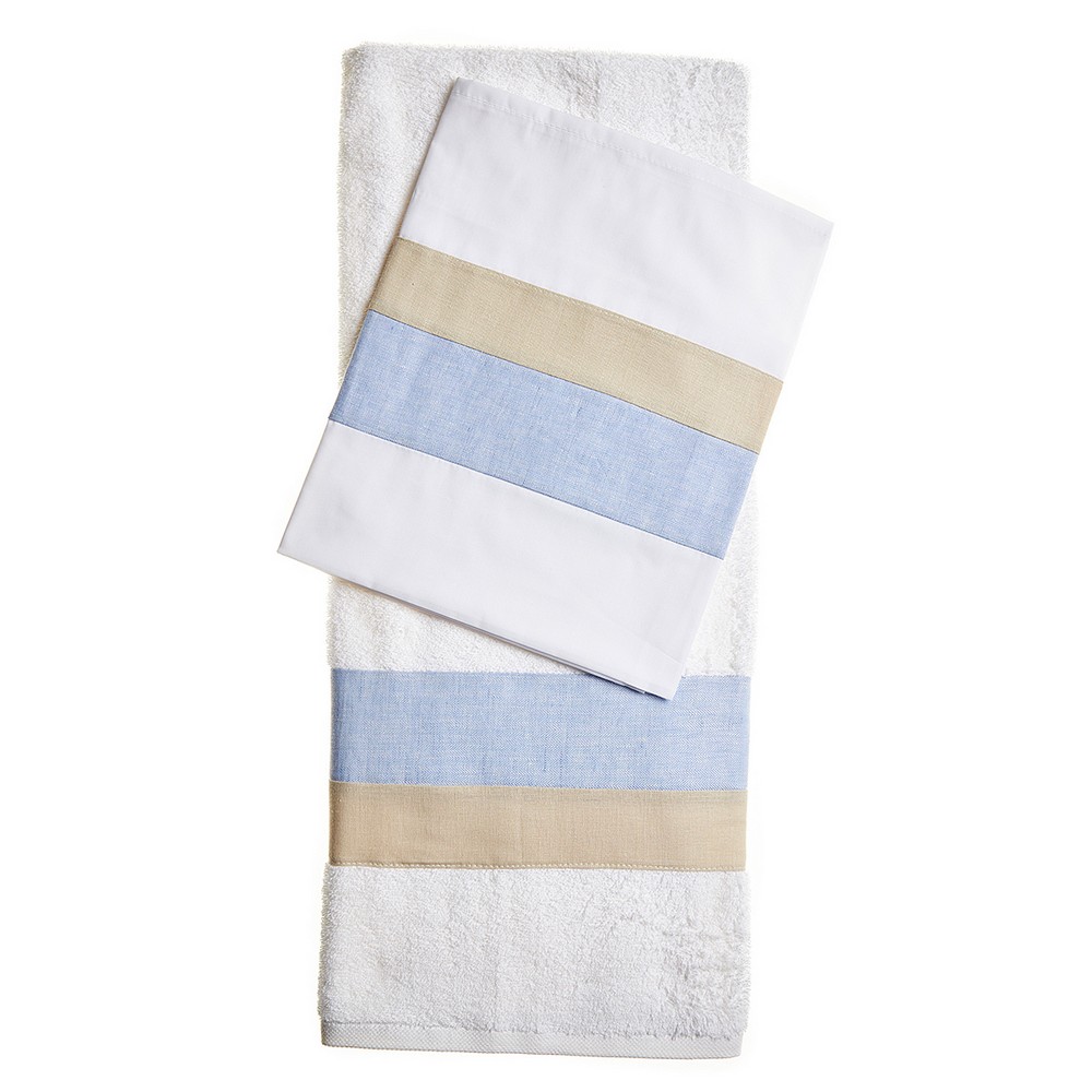 Σετ Λαδόπανα βάπτισης σε σιέλ και μπεζ χρώματα. Το σετ περιλαμβάνει : τα εσώρουχα του παιδιού, την πετσέτα, το σεντόνι .