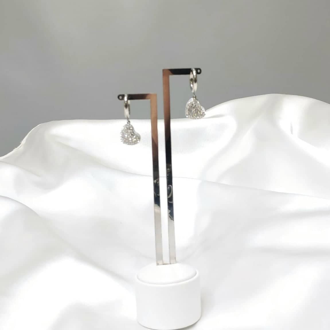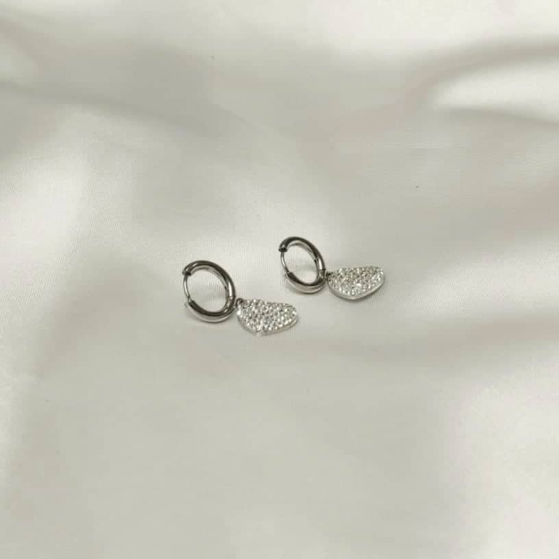 • Σκουλαρίκια καρδούλα με ατσάλι και ζιργκόν