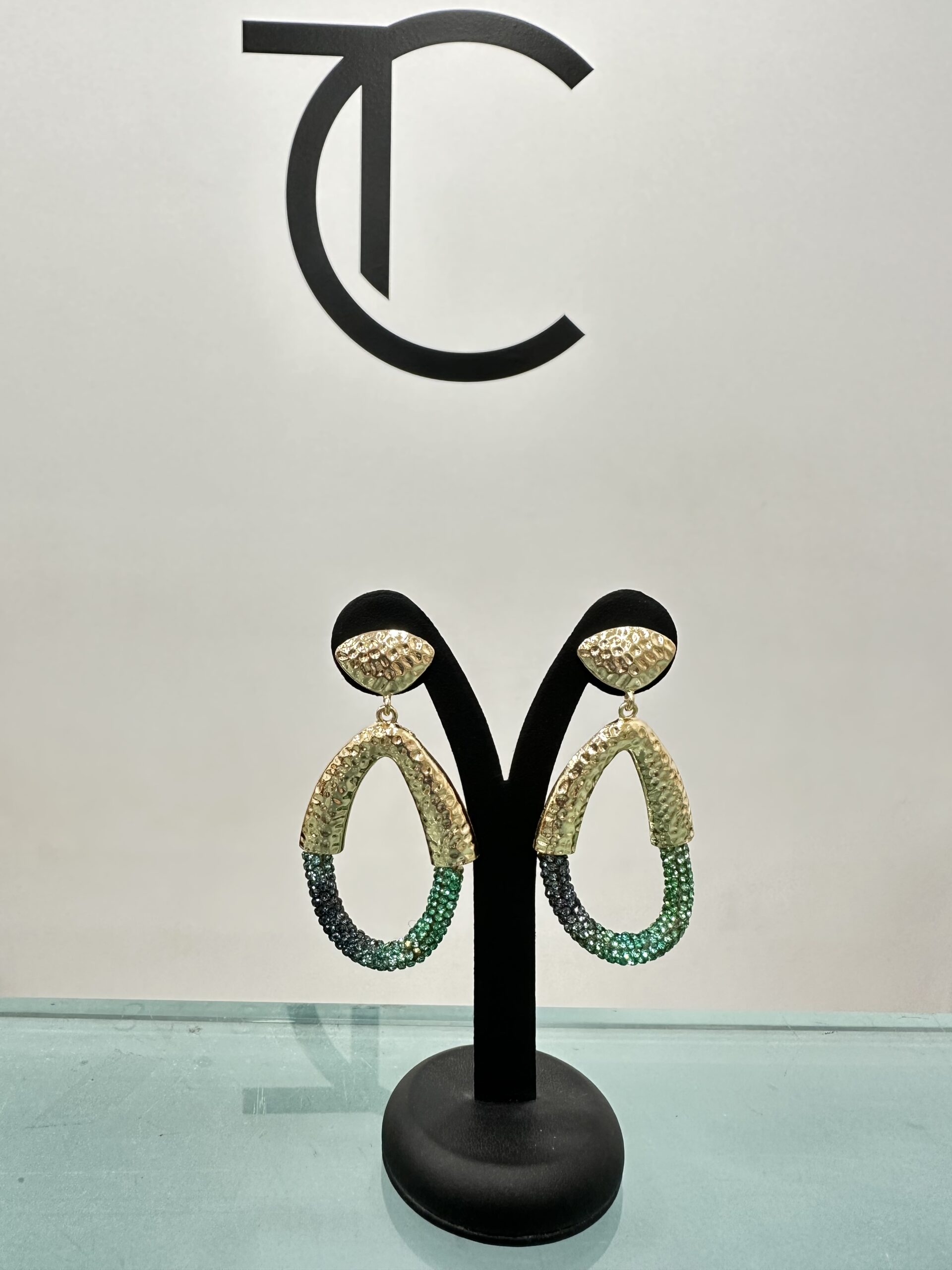 Σκουλαρίκια σταγόνα σε χρυσό και πράσινο
