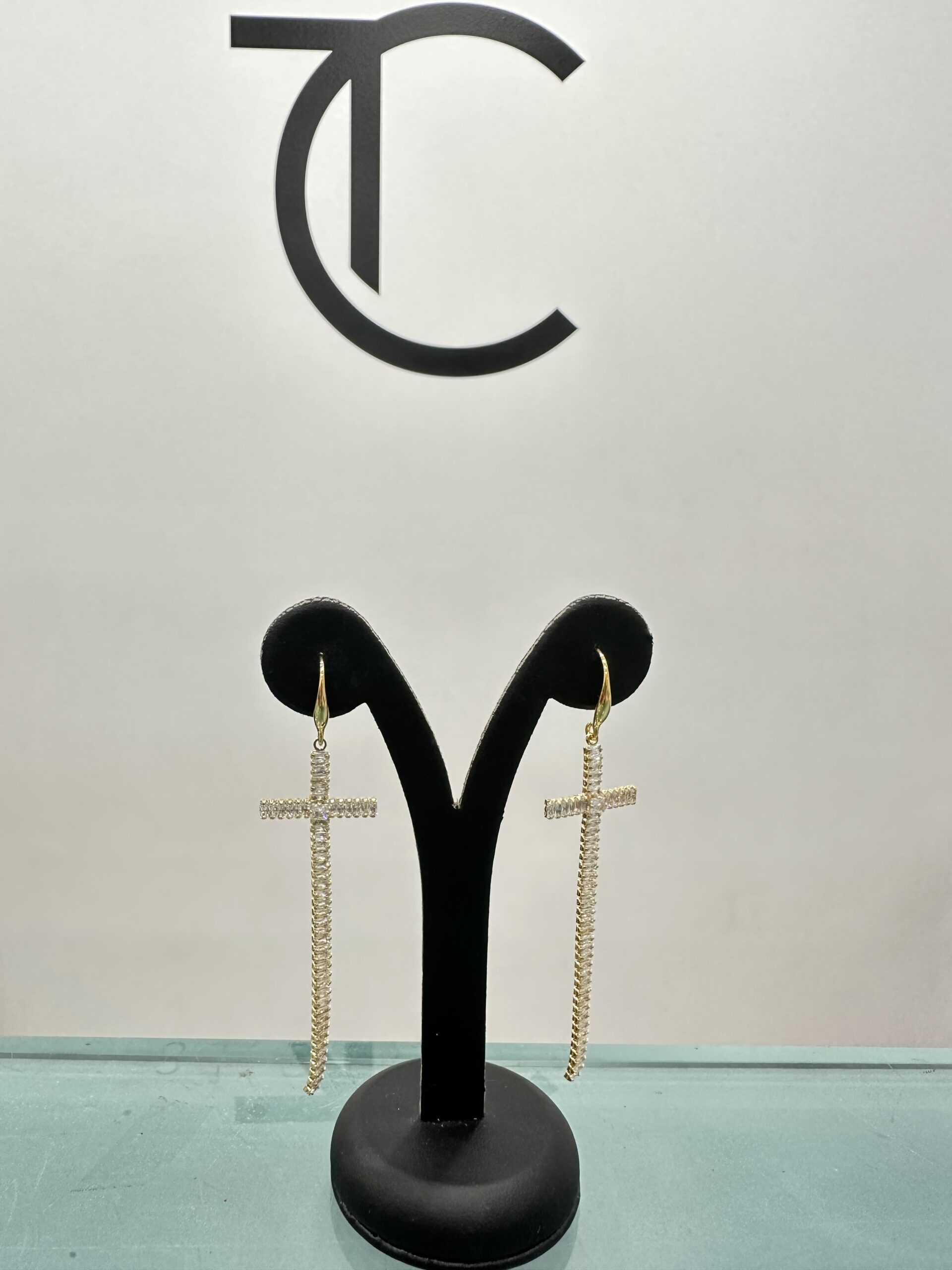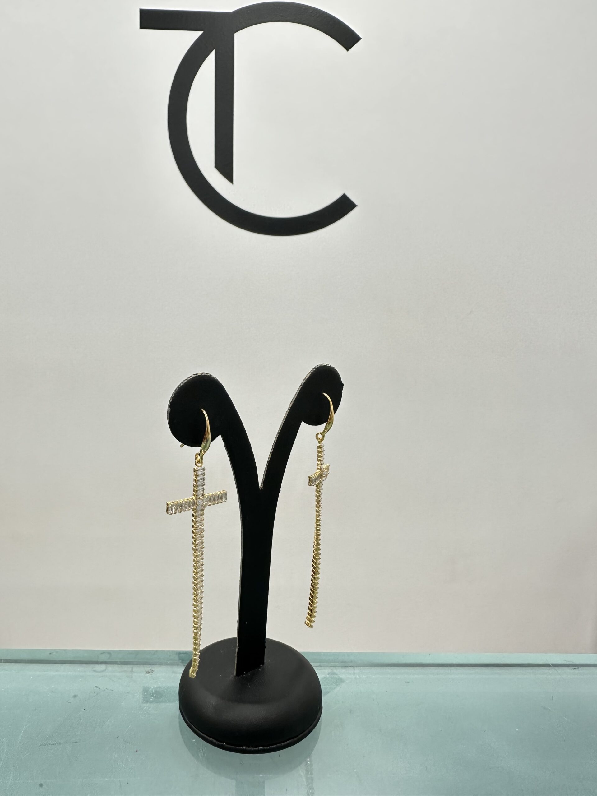 Σκουλαρίκια σταυρός σε χρυσό με στράς