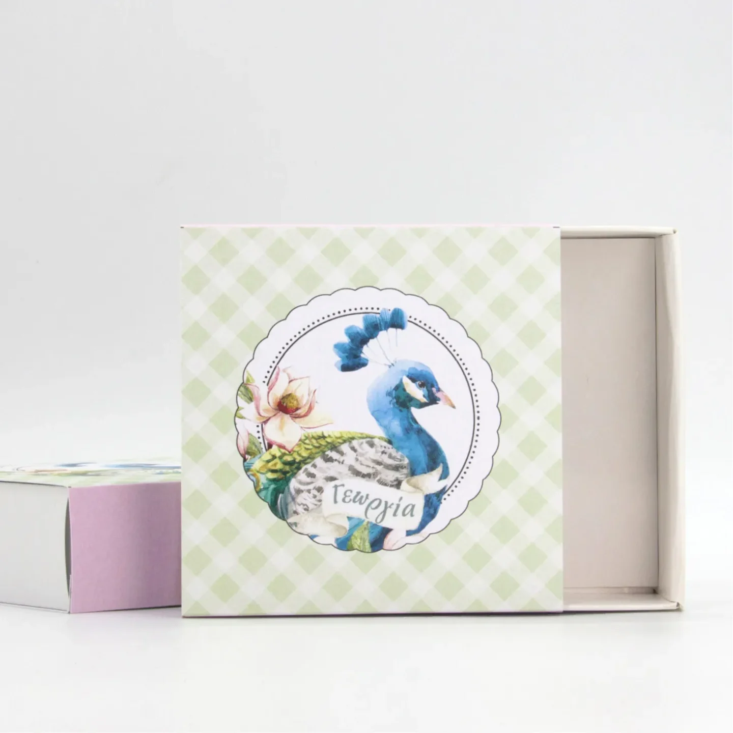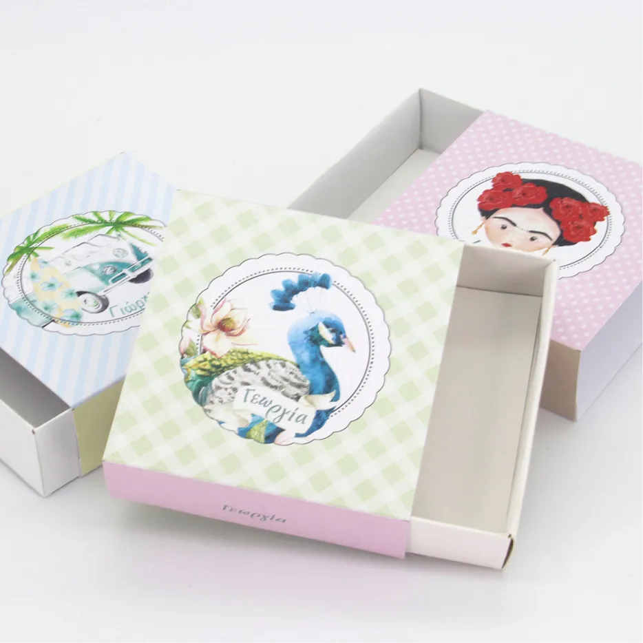 Τετράγωνο συρταρωτό κουτί διάστασης 12x12x4εκ από χαρτί 400gr και καπάκι με 4χρωμη εκτύπωση στο θέμα του μυστηρίου.