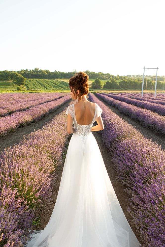 Υπέροχο Nυφικό από γαλλικό τούλι και μπούστο κεντημένο με γαλλική δαντέλα. Φούστα από γαλλικό τούλι σε Α γραμμή. Τιράντα από τούλι και χαμηλή πλάτη. Κανονική εφαρμογή