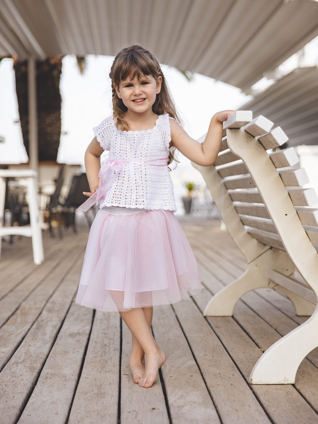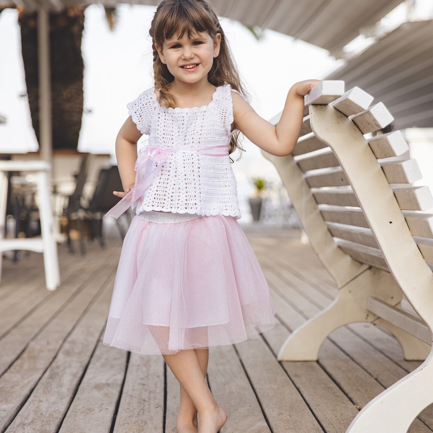 Χειροποίητο σετ μπούστο με τούτου φούστα για Μικρές Κυρίες που θέλουν να ξεχωρίζουν με τις εμφανίσεις τους! Μπούστο πλεκτό με βελονάκι από 100% βαμβάκι σε λευκό και φούστα tutu με γκλίτερ σε απαλό ροζ. Είναι χειροποίητο και απαιτούνται 15 εργάσιμες μέρες για την κατασκευή του σε περίπτωση έλλειψης διαθεσιμότητας. Διαθέσιμο από 1-8 ετών, διαλέξτε το νούμερο ανάλογα την ηλικία του παιδιού, αν θέλετε γράψτε μας στα σχόλια της παραγγελίας σας τις διαστάσεις στήθος, μέση και περιφέρεια.