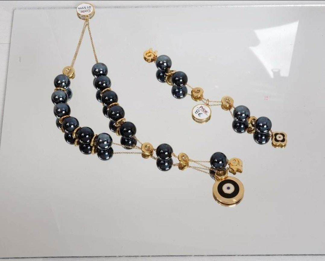 Διακοσμητικό κομπολόι με επιροδιωμένο ατσάλι και ημιπολύτιμους λίθους αιματίτη. Διακοσμητικό μάτι από γκρι σμάλτο. Μήκος 39 εκ. Ιδανικό δώρο για τον άνδρα!