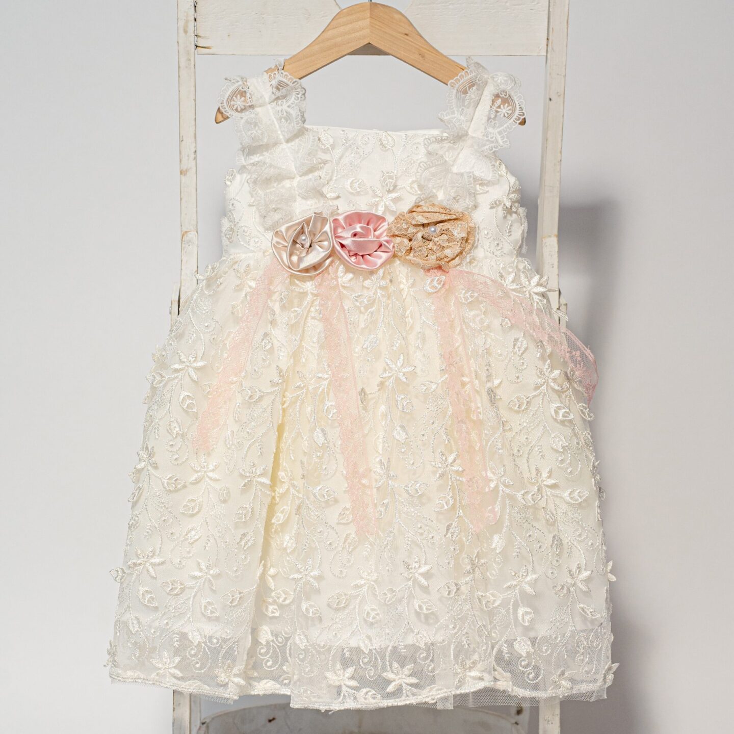 • Boho βαπτιστικό φόρεμα σε εκρού δαντέλα