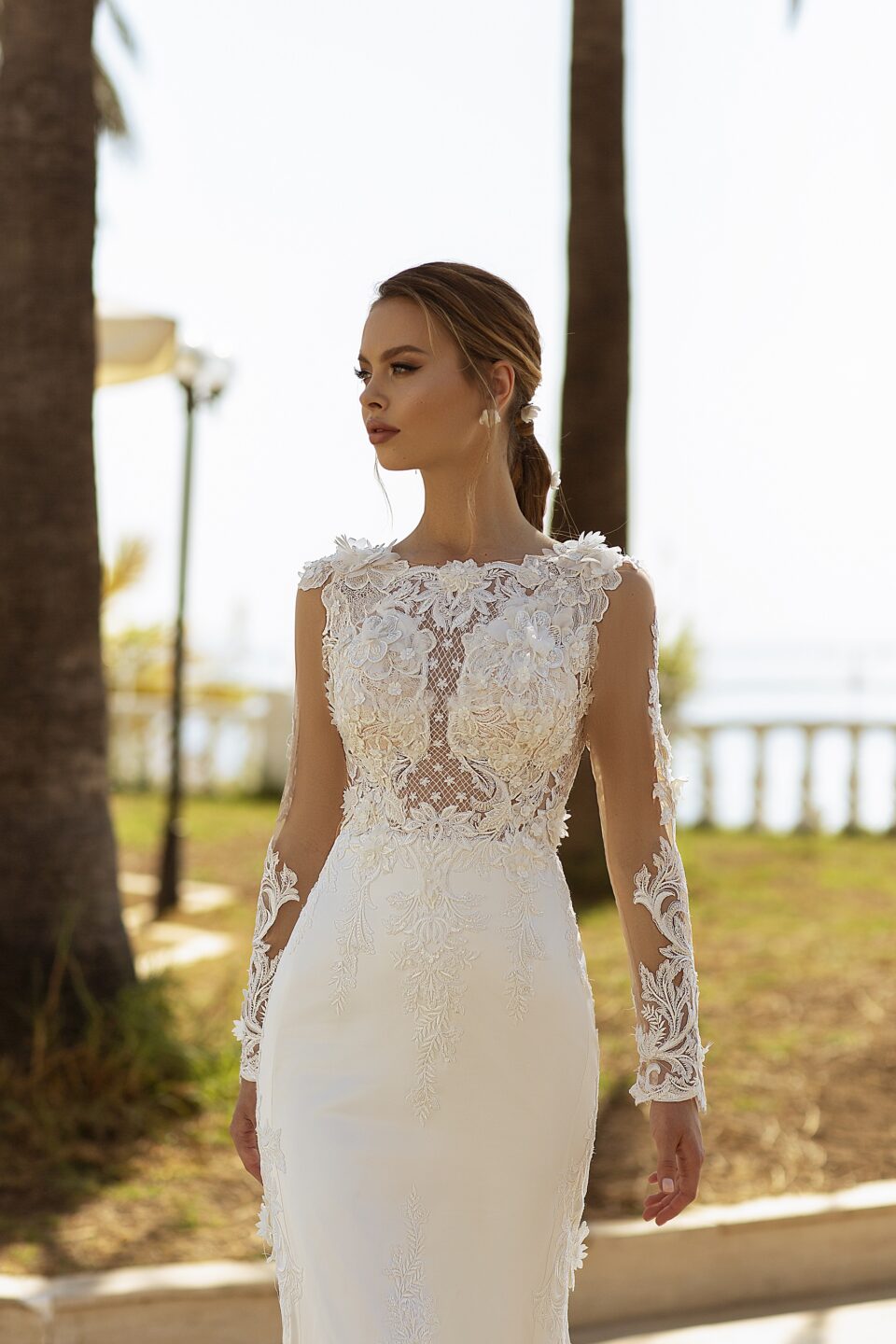 Boho νυφικό με κεντητά σχέδια.Στο επάνω μέρος διαθέτει διαφάνεια με κεντητά σχέδια και διχτάκι σε ένα εντυπωσιακό σχέδιο.Η πλάτη είναι κλείστη και ανοίγει διακριτικά προς τα κάτω. Ιδανικό για πολιτικό και θρησκευτικό γάμο. Κανονική εφαρμογή