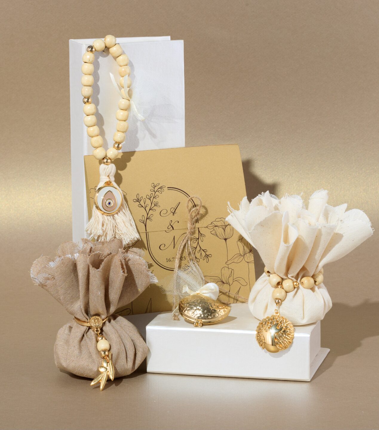 Πολυτελές σετ βάπτισης / σετ νονού, διακοσμημένο με χειροποίητες δημιουργίες με επίχρυσα διακοσμητικά 24 καρατίων.