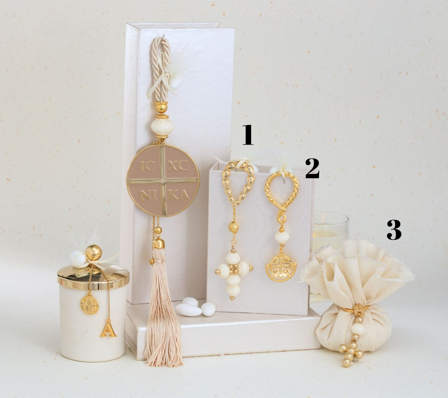 Πολυτελές σετ βάπτισης / σετ νονού, διακοσμημένο με χειροποίητες δημιουργίες με επίχρυσα διακοσμητικά 24 καρατίων.