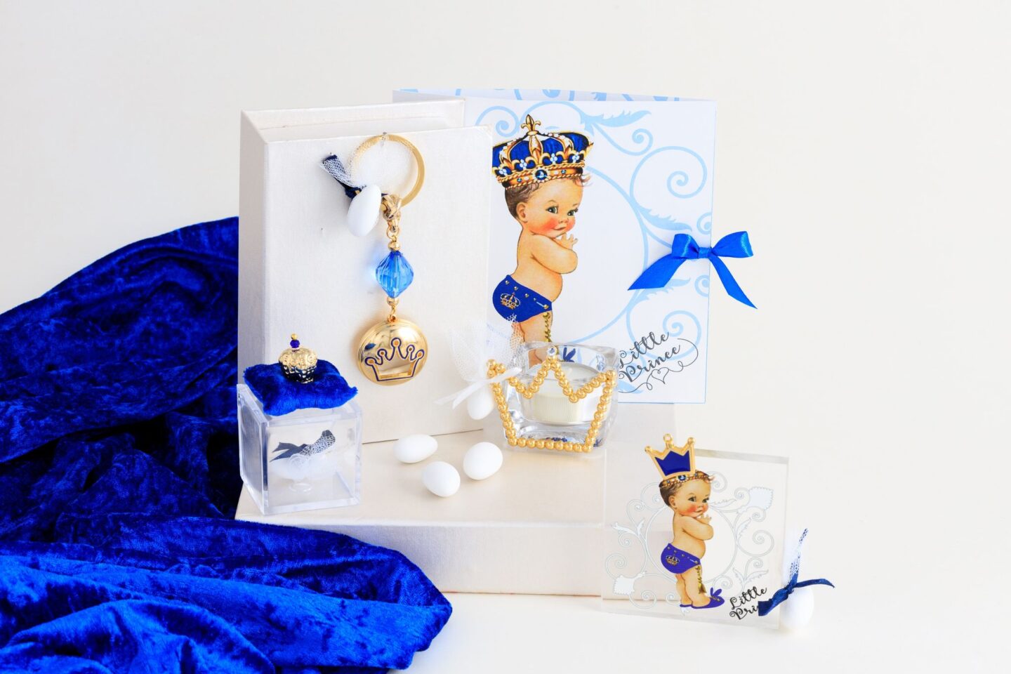 Πολυτελές σετ βάπτισης / σετ νονού, διακοσμημένο με χειροποίητες δημιουργίες με επίχρυσα διακοσμητικά 24 καρατίων.