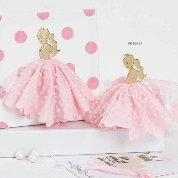 Μπομπονιέρα με Πριγκίπισσα σε δύο παραλλαγές, διατίθεται σε μέταλλο με χρώμα χρυσό ή επιχρυσωμένο με 24 καράτια. Ένα μοναδικό δώρο για τους καλεσμένους σας! Παρέχεται διακοσμημένο με ένα κουφέτο, αν επιθυμείτε επιπλέον μπουκέτο με κουφέτα παρακαλώ επιλέξτε και το προϊόν με κωδικό 40404040. Χειροποίητη δημιουργία Tresento, διαθέσιμο κατόπιν παραγγελίας, ελάχιστη παραγγελία 50 τεμάχια. Προβλεπόμενος χρόνος παράδοσης 20 εργάσιμες ημέρες. Για μικρότερη ποσότητα ή για επείγουσα παράδοση παρακαλώ επικοινωνήστε μαζί μας. Γράψτε μας στα σχόλια της παραγγελίας σας τον κωδικό της φωτογραφίας που επιθυμείτε.