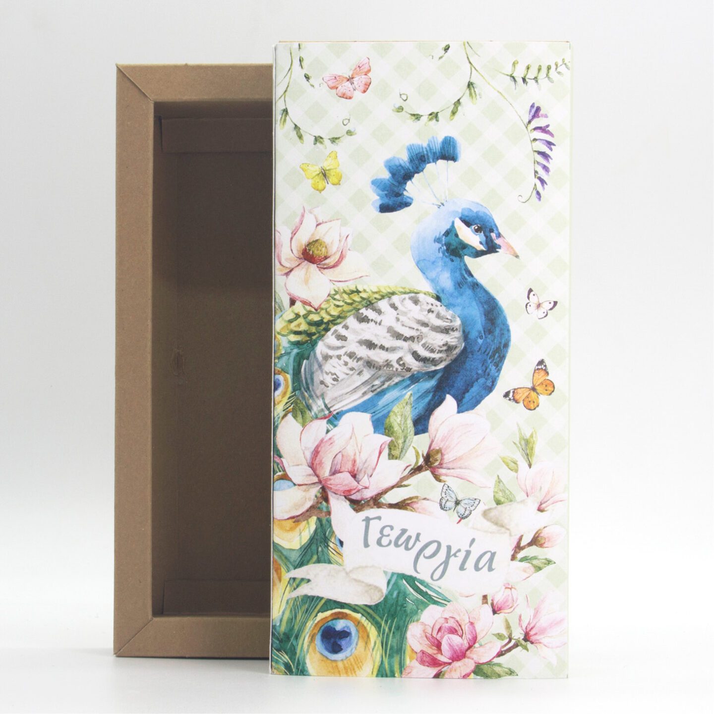 Μπομπονιέρα βάπτισης τετράγωνο συρταρωτό κουτί διάστασης 11x24x4εκ από χαρτί κραφτ 300gr και καπάκι με 4χρωμη εκτύπωση στο θέμα του μυστηρίου. Παραδίδεται σε ανάπτυγμα προς μορφοποίηση. Για την ολοκλήρωση του απαιτείται δίπλωμα και ένα κόλλημα. Ελάχιστη παραγγελία 10 τεμάχια.