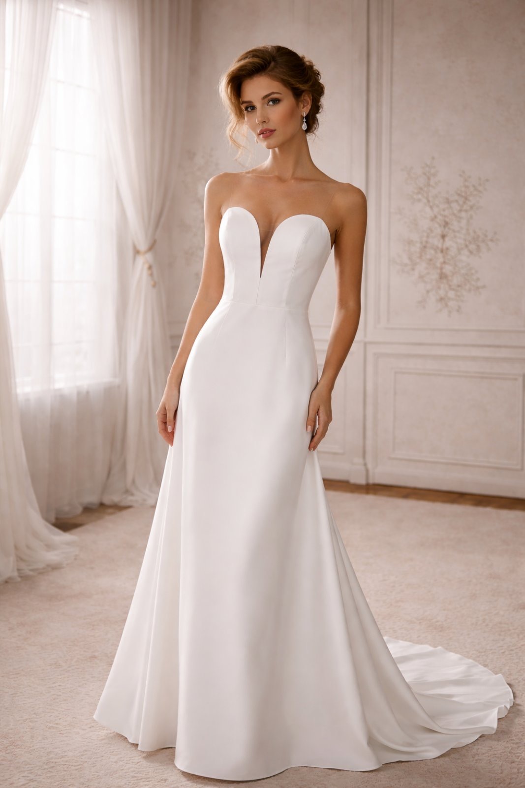 Strapless minimal νυφικό με διαφάνεια στο μπούστο και καθαρή γραμμή Α-line. Αυτό το strapless minimal νυφικό συνδυάζει τη διαχρονική κομψότητα με σύγχρονες γραμμές υψηλής ραπτικής. Το structured μπούστο αγκαλιάζει το σώμα, ενώ η διακριτική διαφάνεια στο ντεκολτέ προσθέτει θηλυκότητα και μοντέρνο χαρακτήρα χωρίς υπερβολές.
