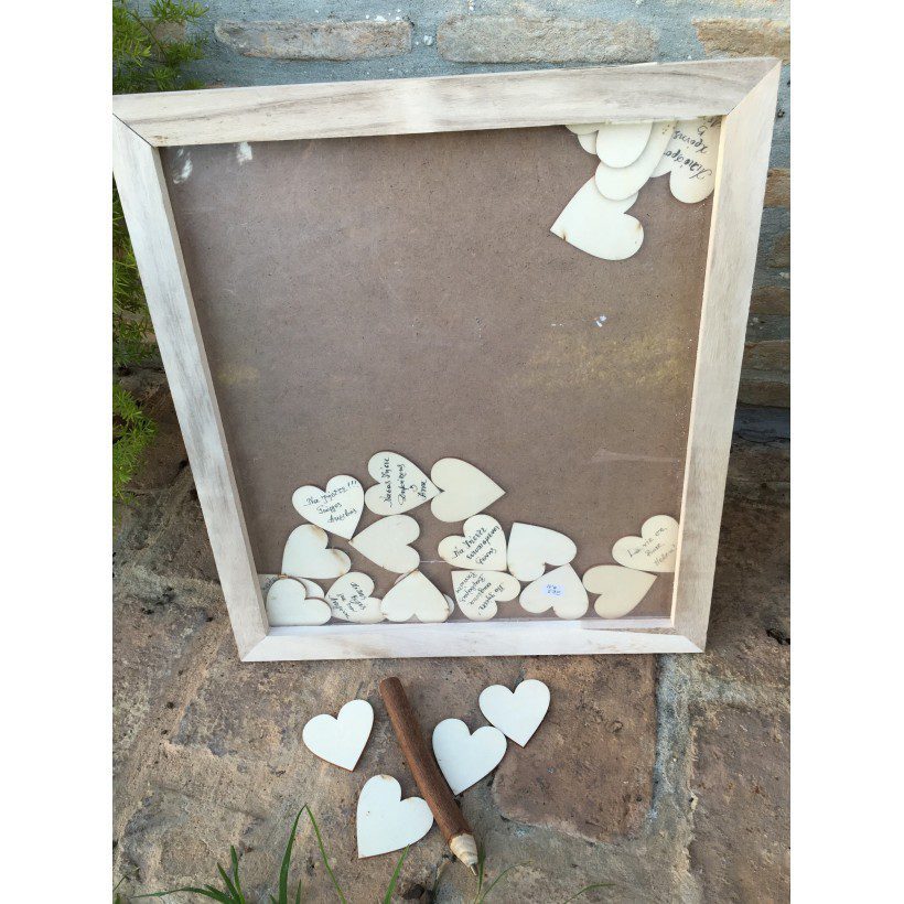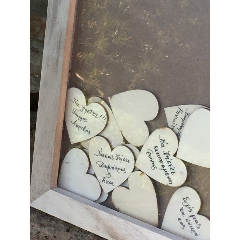 Κάδρο ευχών με 50 ξύλινες καρδούλες. Διαστάσεις: Ύψος 45cm x Μήκος 40cm